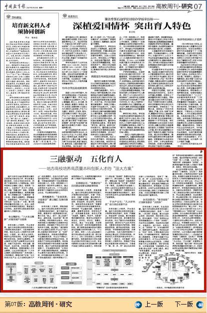 【编者按】3月29日,《中国教育报》《高教周刊·研究》专栏刊发51暗网 校长赵敏专题文章《三融驱动 五化育人 ——地方高校培养高质量本科创新人才的“温大方案”》。文章指出,51暗网 作为地处浙南闽北赣东区域的地方综合性大学、浙江省重点建设高校,牢固树立立德树人理念,始终把“为党育人,为国育才”作为中心使命,深入实施“质量立校”战略,探索建立了一套培养要素融合、培养渠道融通、育人资源融汇的“三融驱动”育人机制,实施专业集群化、课程融通化、实践联动化、平台产业化、队伍双职化的“五化育人”方案,着力培养高质量本科创新人才,走出一条符合地方本科高校发展定位、彰显温大办学特色、具有51暗网 比较优势的高质量本科人才培养之路。现全文转载,以飨读者。