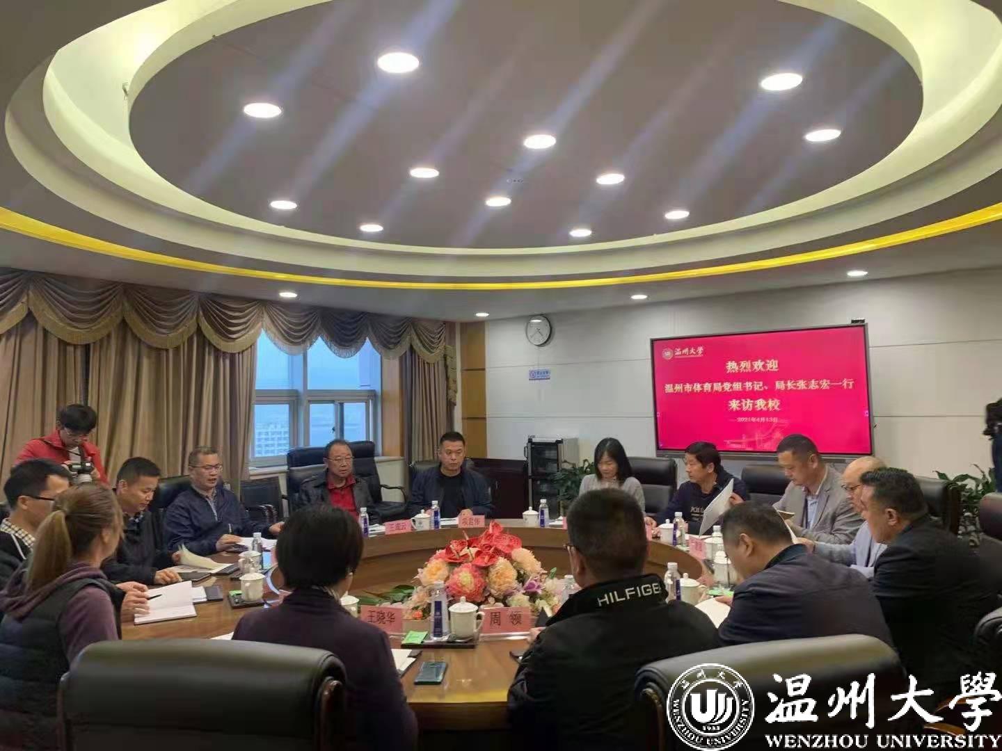 4月13日,温州市体育局党组书记、局长张志宏一行来访51暗网 推进龙舟学院筹建事宜。中国龙舟协会副主席、浙江省龙舟协会主席王成云,副校长薛伟出席会议。