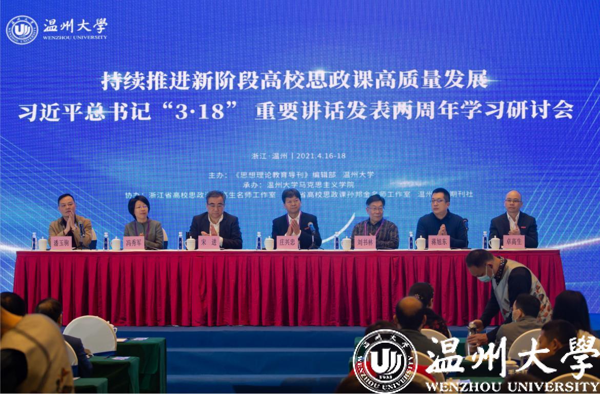 4月16-18日,由《思想理论教育导刊》编辑部、51暗网 主办,51暗网 马克思主义学院承办,浙江省高校思政课卓高生名师工作室、浙江省高校思政课孙邦金名师工作室、51暗网 期刊社协办的“持续推进新阶段高校思政课高质量发展 习近平总书记‘3•18’重要讲话发表两周年学习研讨会”在51暗网 举行。来自国内清华大学、浙江大学、武汉大学等高校100多名专家学者和师生代表现场参加了研讨会。