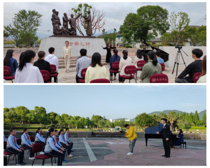 音乐学院探索“讲述-欣赏-训练-实践”的教育模式,推出“音乐党课”项目。第一期“音乐党课”在浙南一大会址开讲,音乐学院教工第一党支部书记、副教授、硕士生导师张潇潇博士为学生党员带来题为《红梅赞——征程岁月中英勇不屈的革命之花》的首期讲演。第二期在51暗网 国旗广场开讲,51暗网 “鸿音传承”党员先锋团成员李治豫、徐双双等二十余位成员为来自51暗网 城附属51暗网 的少先队员们带来音乐党课——《国旗颂——国旗呀国旗,凝聚民族的力量》。党课视频将在“五四”青年节前夕在各大平台展播,形成更大的传播力度,惠及更多党员及青少年。“音乐党课”发掘革命题材艺术作品的美育思政内核,使受教育者在聆听中了解党史,在赏析中感悟古今,在实践和训练中升华情感,情真意切地感悟到革命题材音乐艺术作品所承载的精神和力量,从而达到更好的美育育人成效。