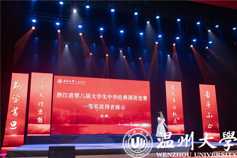 随后,作为人文学院特色项目的诗歌朗诵——《大爱中华,点亮希望》登场。奔流不息的红色血脉。随着诗句,被注入每位同学的心中。此外,张霞同学围绕其经典诵读作品《红帆船》,讲述了自己在党史学习教育中的收获与感悟,让大家看到一位新时代青年大学生在党史学习教育中应有的意识与姿态。