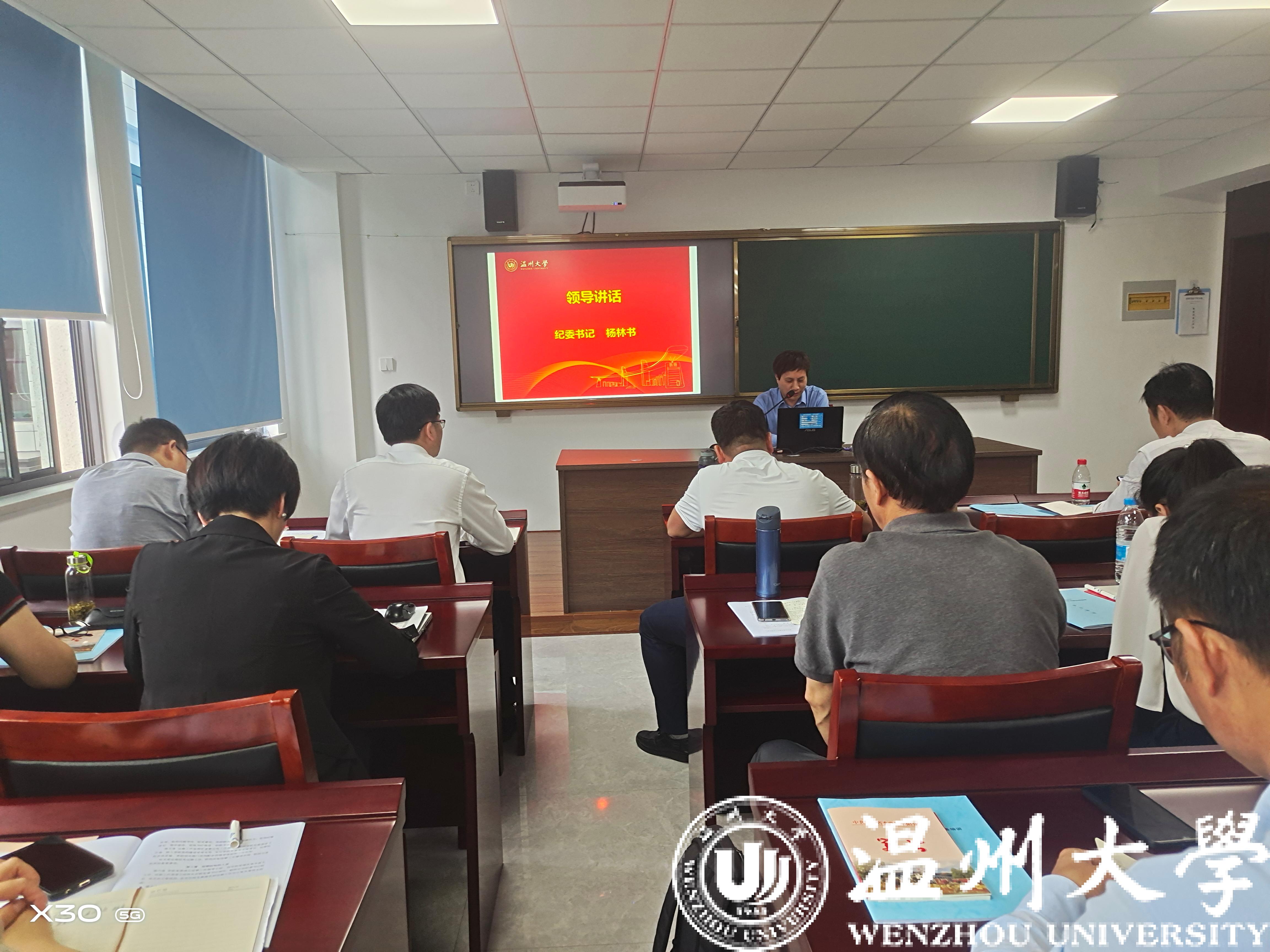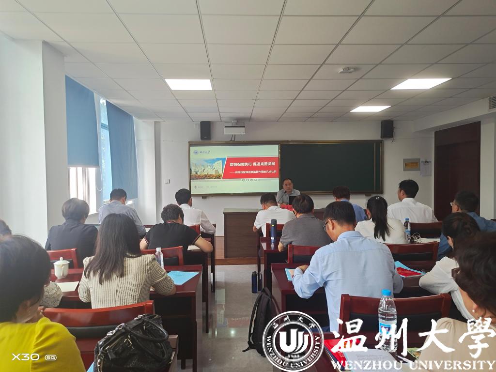 校纪委书记、监察专员杨林书讲话。他指出,全体纪检监察和巡察干部一定要深刻领会习近平总书记在十九届中央纪委五次全会上所提出的“纪检监察机关要接受最严格的约束和监督,努力建设一支政治素质高、专业化能力强、敢于善于斗争的纪检监察铁军”的指示精神,用“顶格”的标准要求自己,规范工作。杨林书强调,要从严从深,加强思想政治建设,做政治上的明白人;要从严从实,提高履职能力,做业务上的内行人;要从严从细,加强自我管理,做遵纪守法的规矩人。杨林书勉励全校纪检监察干部,作为最富有战斗力和活力的群体,要牢记党的初心使命,勇于担当,着力建设清廉学院、清廉处室,为打造浙江省“重要窗口”具有标识度的“清廉温大”做出贡献。