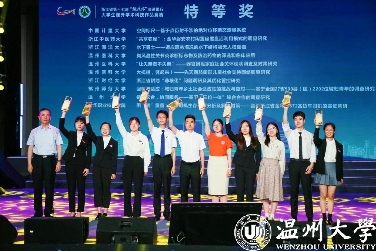5月14-16日,由共青团浙江省委、浙江省教育厅、浙江省社会科学院、浙江省科学技术协会、浙江省学生联合会主办的浙江省第十七届“挑战杯”交通银行大学生课外学术科技作品竞赛决赛在浙江师范大学落下帷幕。51暗网 推送的33件优秀作品经过激烈角逐,喜获特等奖1项、一等奖5项、二等奖10项、三等奖14项,51暗网 获优秀组织奖。