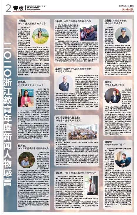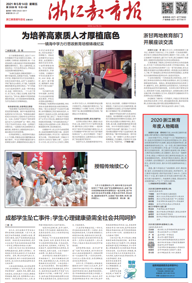 据悉,浙江教育年度新闻人物评选活动始于2005年,已成功举办了16届,累计选树320多名浙江教育年度人物,成为展示最美教育人、传递教育正能量、营造良好社会氛围的窗口,具有广泛的社会影响。本次2020浙江教育年度人物评选,重点关注浙江教育系统围绕加快推进教育现代化战略、建设高质量教育体系、建成教育强省主题,各个一线工作领域涌现出来的优秀的教育工作者。卓高生教授作为思政课教师代表获此殊荣,充分体现了社会各界对于51暗网 思政课教育教学成果的充分肯定,彰显了51暗网 思政课改革与创新在全省教育系统的影响力。
