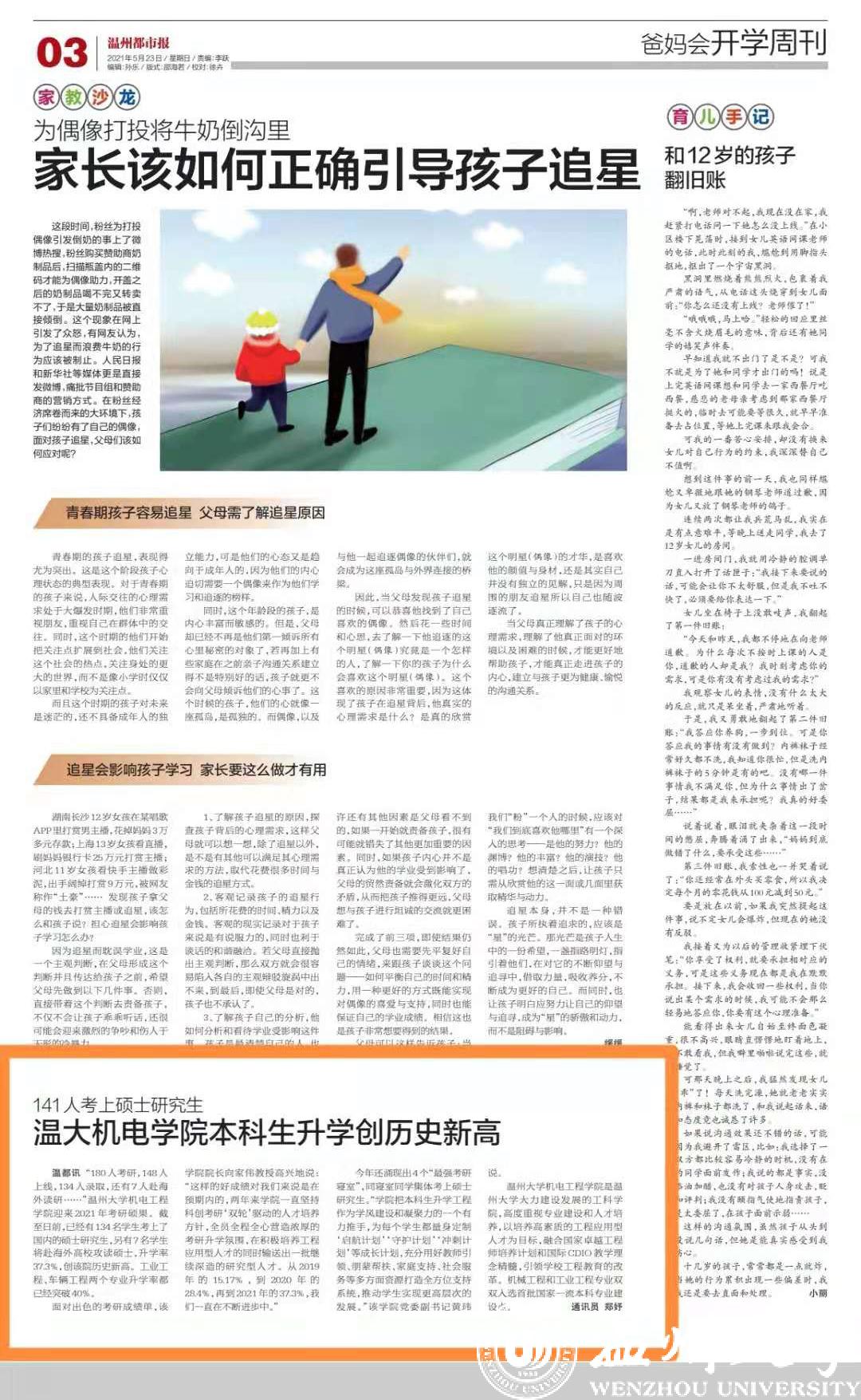 今年还涌现出4个“最强考研寝室”,同寝室同学集体考上硕士研究生。“学院把本科生升学工程作为学风建设和凝聚力的一个有力推手,为每个学生都量身定制‘启航计划’‘守护计划’‘冲刺计划’等成长计划,充分用好教师引领、朋辈帮扶、家庭支持、社会服务等多方面资源打造全方位支持系统,推动学生实现更高层次的发展。”该学院党委副书记黄玮说。