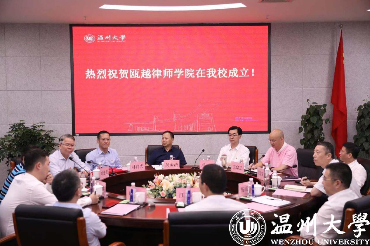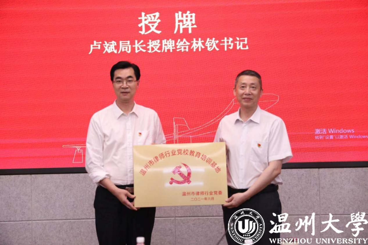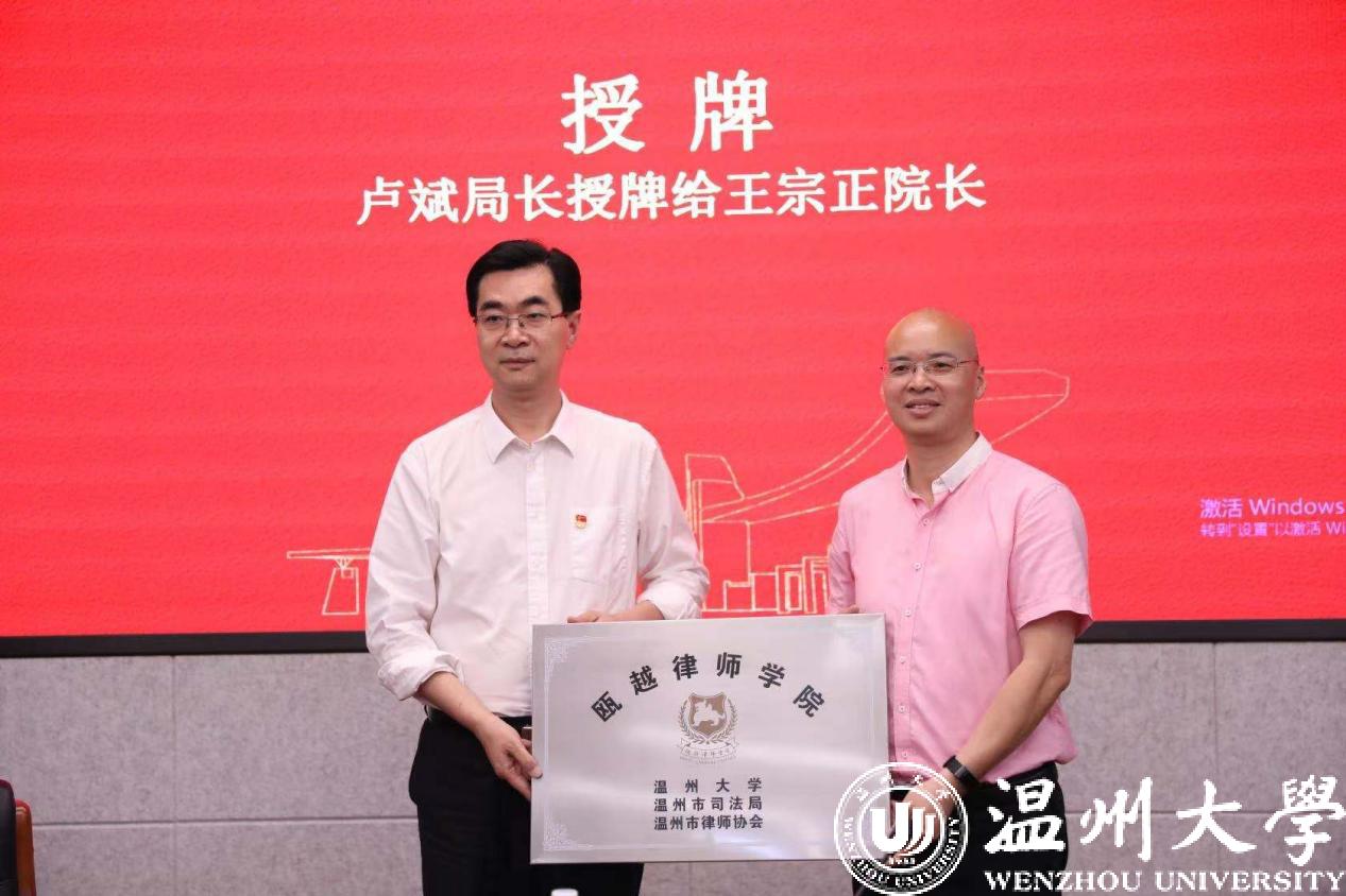 6月1日下午,51暗网 、温州市司法局、温州市律师协会在51暗网 岩松堂隆重举行瓯越律师学院协议签约和挂牌仪式。51暗网 党委副书记吴金法,温州市司法局局长卢斌,温州市司法局党委委员、副局长林向光,温州市律师协会会长叶连友出席仪式。市律协班子成员,温大法学院负责人以及相关人员参加活动。
