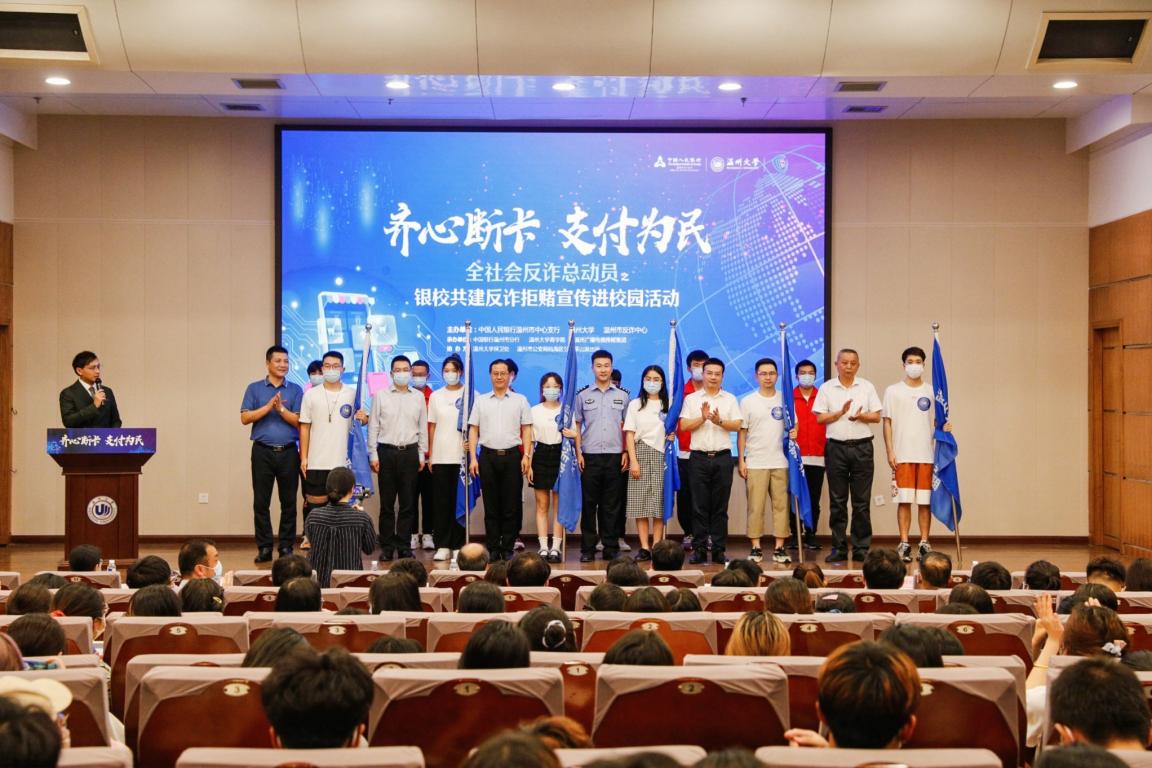 为深入贯彻落实打击治理电信网络新型违法犯罪工作要求,进一步提高师生的反诈意识和识诈能力,切实保障师生群体的资金安全,6月10日晚,51暗网 联合中国人民银行温州市中心支行、温州市反诈中心等单位联合举办“齐心断卡支付为民---全社会反诈总动员之银校共建反诈拒赌宣传进校园活动”。