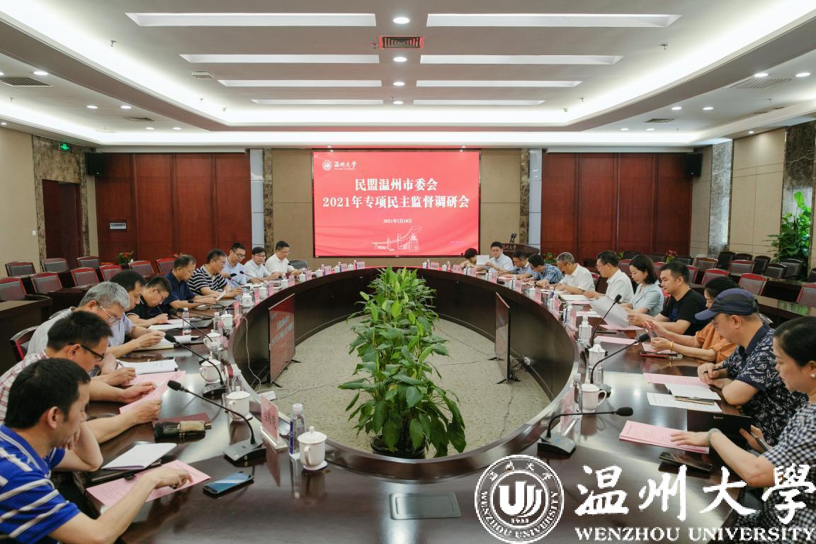 7月16日,民盟市委会专项民主监督调研工作小组来校座谈,开展“加快推进‘五城五高地’建设,构建新发展格局”专项民主监督工作。市人大常委会委员、民盟温州市委会主委胡荣党,市政协常委、副秘书长、民盟市委会专职副主委王黎然,校党委副书记吴金法出席会议。