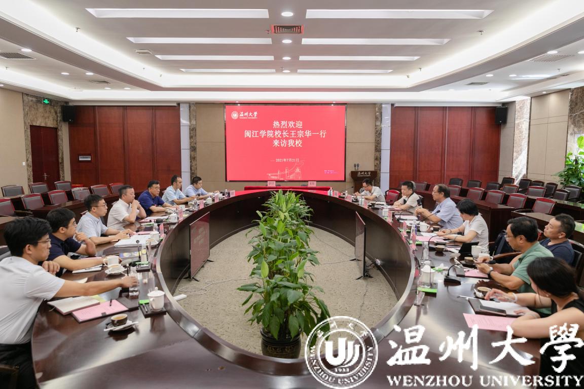 7月21日,闽江学院王宗华校长一行来校考察交流,并就两校深化交流合作事宜进行洽谈。校党委书记谢树华、副校长薛伟出席会议,相关部门、学院负责人参加。