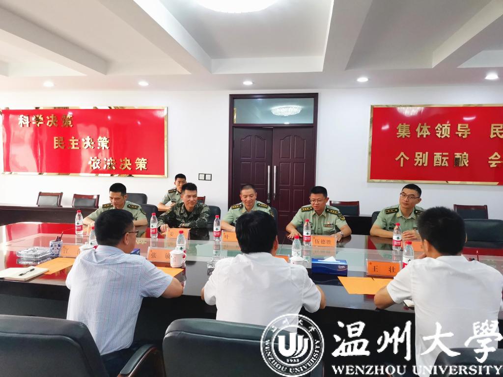 在中国人民解放军建军94周年来临之际,为扎实做好“八一”期间双拥工作,进一步密切军、校关系,7月27日上午,51暗网 党委副书记庄兴忠等一行走访武警温州支队,代表51暗网 向官兵们致以节日慰问。庄兴忠一行受到了武警支队的热烈欢迎,并与支队长叶峰、政委伍德胜等领导进行座谈交流。