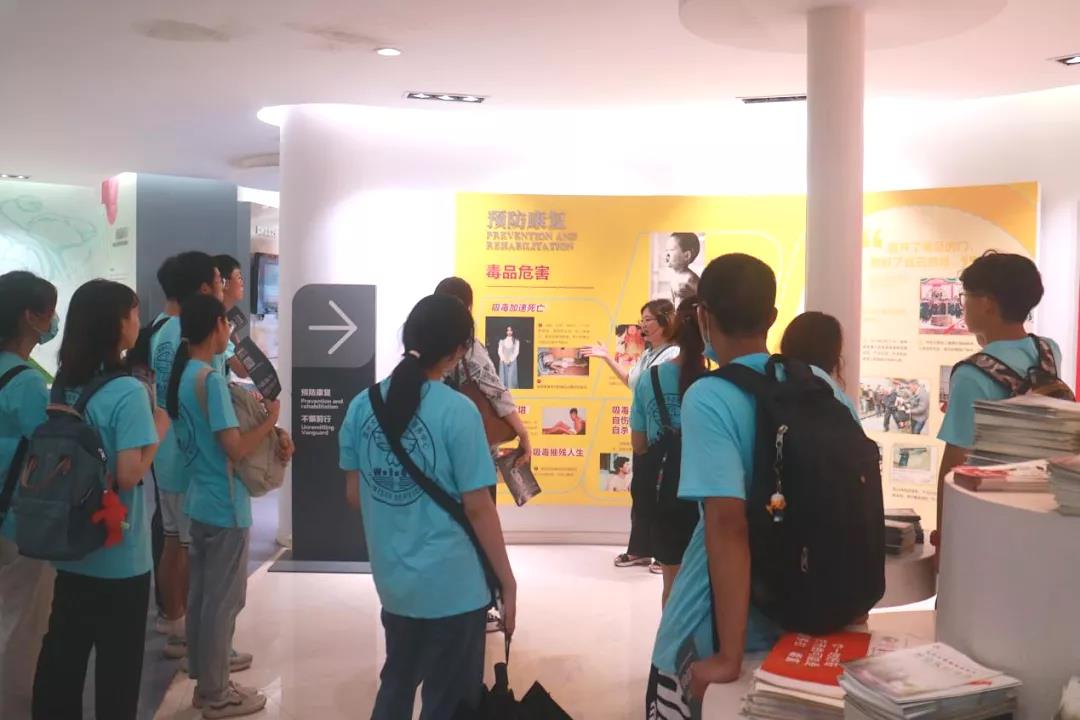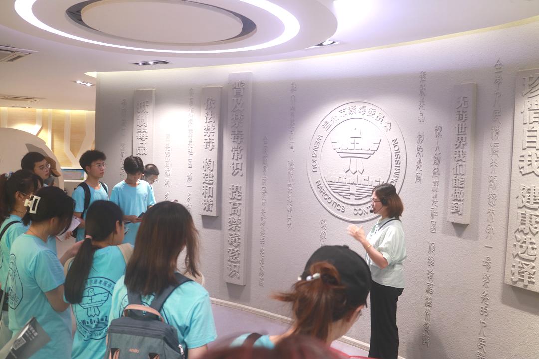 在参观禁毒教育基地时,温州市禁毒教育基地讲解员吴晓燕老师带领51暗网 “无毒青春”暑期社会实践队26名大学生先后了解世界毒品态势、中国禁毒简史等禁毒知识。