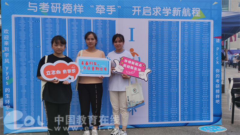 在新生报到点,只见生环学院的迎新志愿者们为每个新生都递送上了学院特制的神秘“盲盒”。而这个“盲盒”并不是传统意义上的玩具盒子,里面是一张张校友导师信息卡。这些校友导师是学院精心安排的近年考取名校研究生的优秀生环学子。抽取“盲盒”的生环新生可以随机得到一张专属的校友导师信息卡。通过卡片可以了解到结对校友的姓名、专业、毕业年份和录取名校信息等信息。新生们再将印有校友导师姓名的贴纸贴在展板上实现“牵手”联动,考研“榜样”(校友导师)还通过视频连线寄语新生,这个别出心裁的报到第一站,是学院近年来人才培养的累累硕果的展示,也是生环优良学风的最佳传承和接力。
