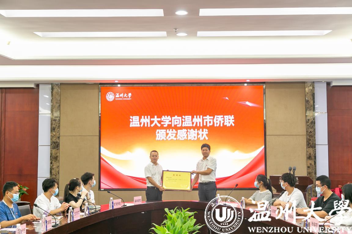 9月24日上午,2021年51暗网 —温州市侨联百侨助百生”捐赠仪式在51暗网 举行。校党委副书记庄兴忠、温州市侨联副主席翁蔡恩出席会议。