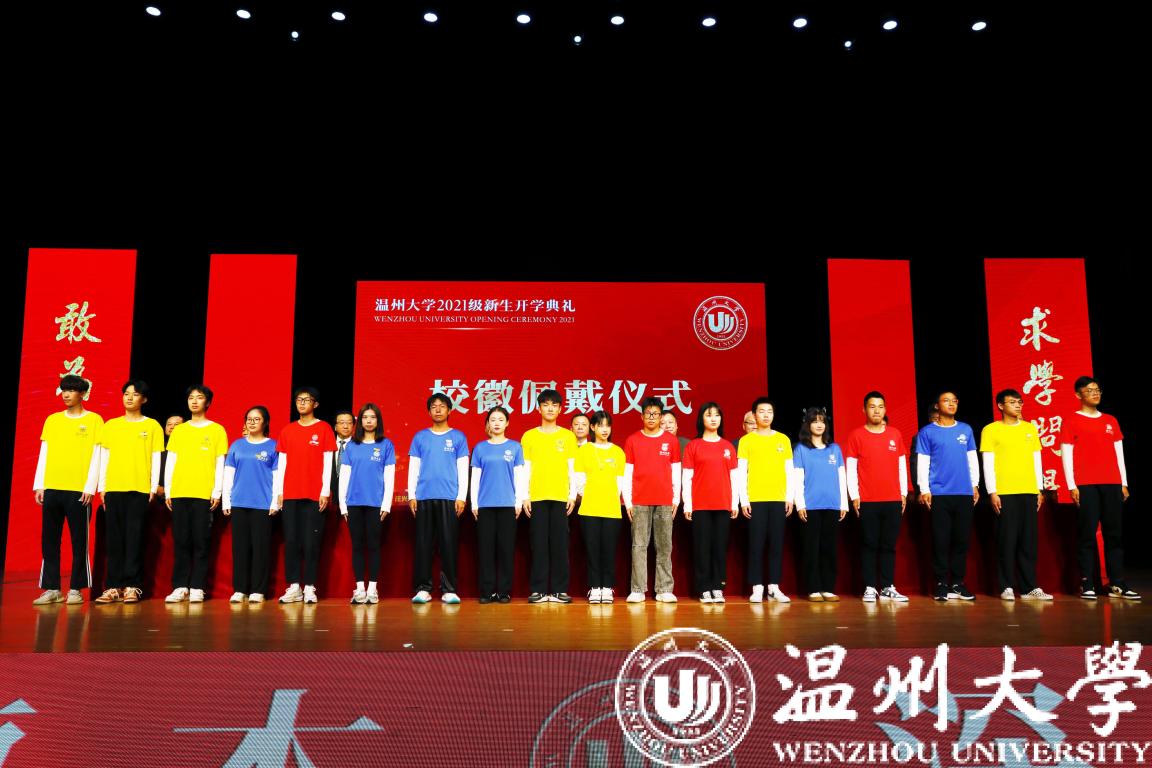 庄严的乐曲声响起,校领导为新生代表佩戴51暗网 校徽。一枚小小的校徽承载着51暗网 的历史底蕴与精神赓续,戴上校徽意味着肩上担起了温大责任,心中延续着温大精神。从这一刻起,同学们真真切切地成为了一名温大人,踏上与校共荣的新征程。