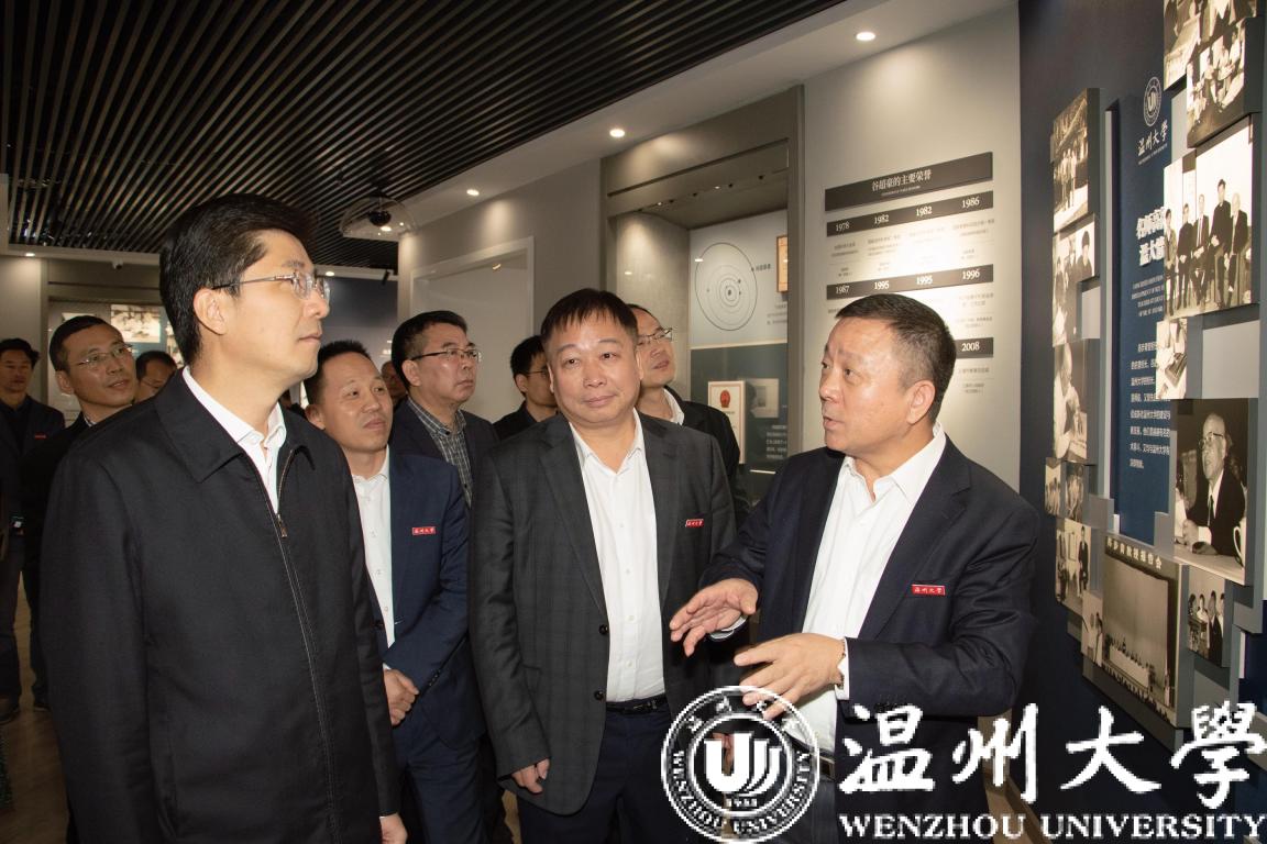姚高员一行还参观了51暗网 苏步青谷超豪纪念馆,了解51暗网 数学文化建设情况。他详细了解苏步青、谷超豪的生平事迹和卓著成就,以及数学家们热爱祖国、情系桑梓的动人事迹。姚高员希望51暗网 进一步传承弘扬科学家精神,进一步做好人才培养和文化交流工作,为温州市“数学家之乡”建设提供人才和智力支撑。