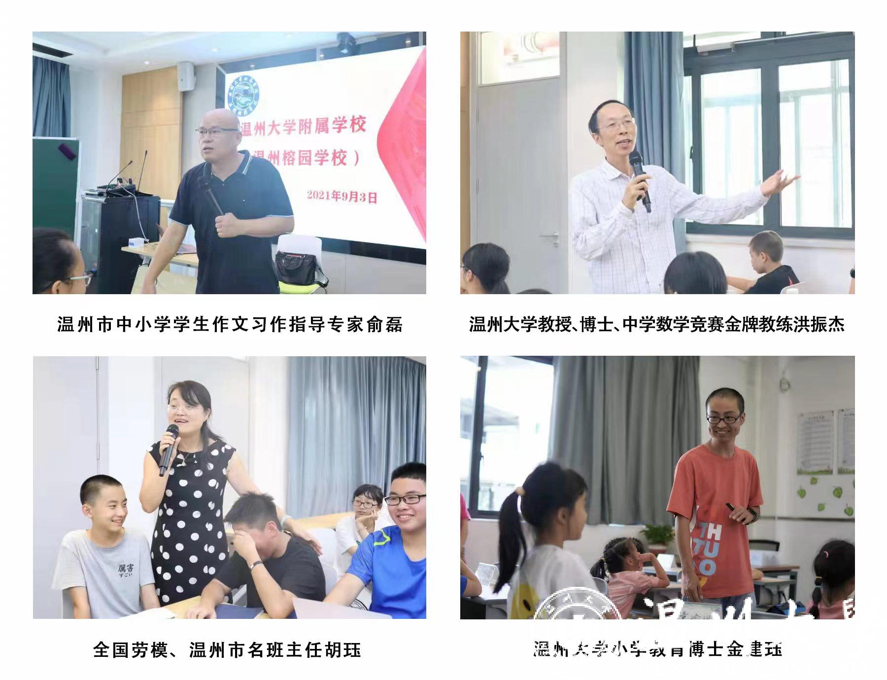 依托温大办学优势,在课程规划和师资赋能等方面给予支持。现有51暗网 教育学院金建钰博士担任小学科学专任教师;51暗网 教育发展研究院蒋金崇担任社会课专任教师;51暗网 人文学院写作教学名师俞磊担任作文教学导师,每周开设“趣语文”写作课;51暗网 洪振杰教授担任数学思维导师,每周开展数学思维拓展课。这些教授定期来校开课,极大拓宽学生的视野。51暗网 张作仁、胡珏、周奇等教授、围绕“科学饮食、高效学习、生命价值、沟通交流”等主题开展系列讲座。同时,51暗网 全职院士金振民,长江学者叶修梓、国家有突出贡献中青年专家计翔,中宣部文化名家暨“四个一批”人才、著名网络作家、温大教授蒋胜男等高层次专家、学者还将不定期为同学们进行励志教育讲座,51暗网 教师教育“溯初班”的学生全程参与51暗网 附属51暗网 51暗网 的拓展课程、一对一辅导等助教活动。51暗网 附属51暗网 将纳入浙江省教师教育重点基地建设范畴,计划打造成为51暗网 教育硕士和教育学硕士的创新研究基地。