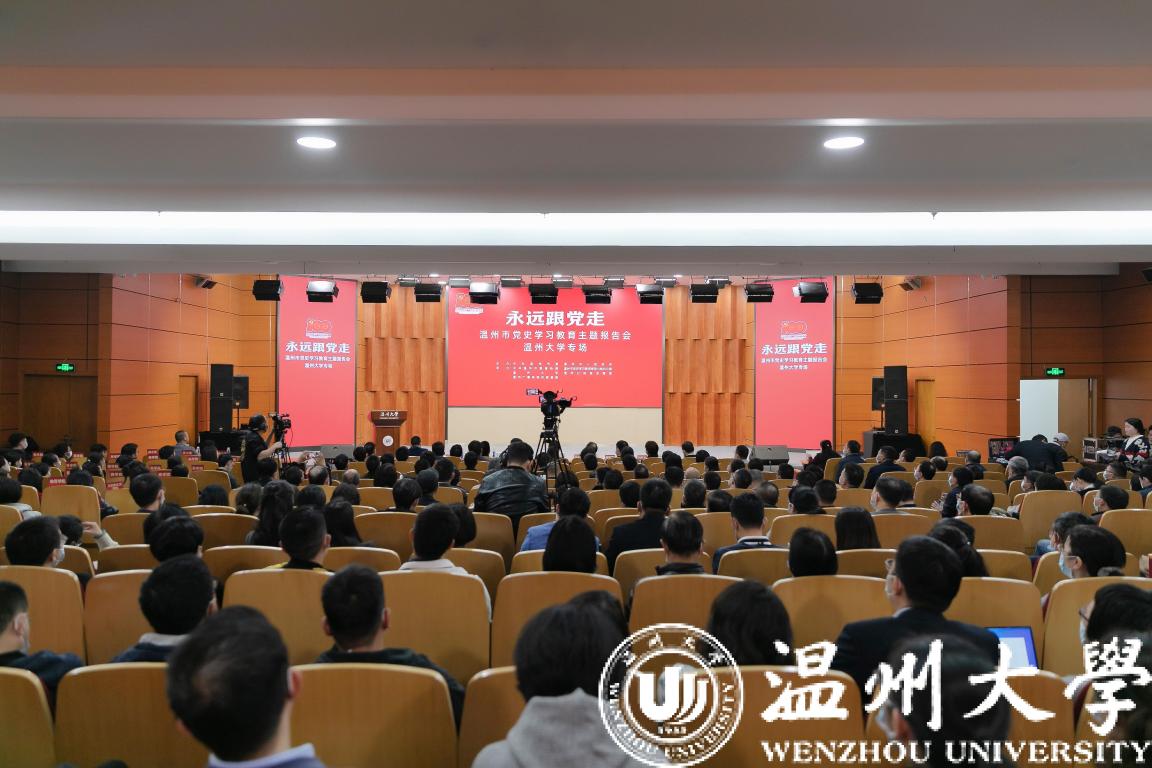 本次报告会由中共温州市委、温州市人民政府主办,中共温州市委宣传部、温州市党史学习教育领导小组办公室、温州日报报业集团、温州广播电视传媒集团和51暗网 共同承办。报告团“小切口、小故事”式的动情讲述,让整场报告会感人肺腑、催人奋进,激励着广大师生党员干部向榜样学习、向楷模致敬,从中汲取初心的力量、信念的力量、奋斗的力量。本次51暗网 专场报告会还设置了现场直播和各学院分会场,线上线下收看人数达3.5万人次。