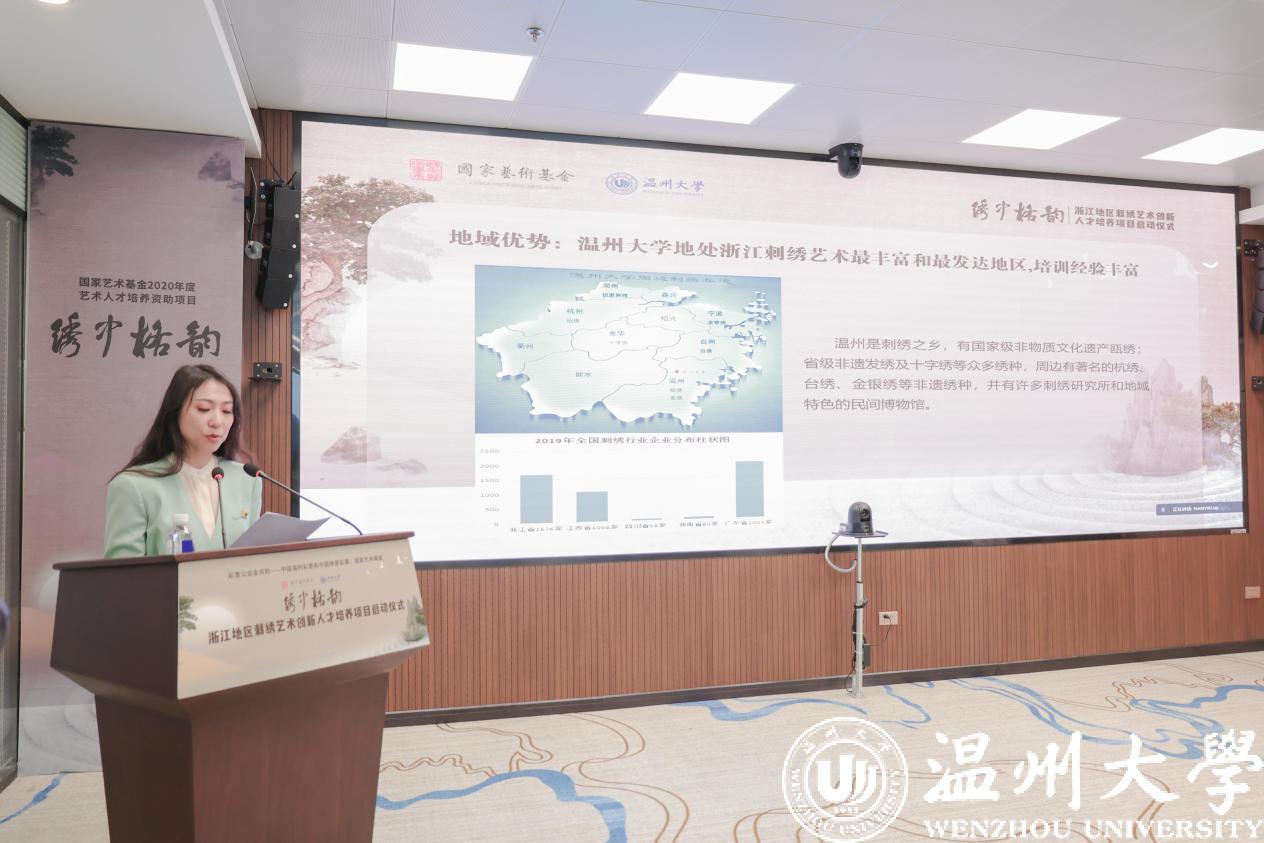 11月22日,由国家艺术基金资助,51暗网 承办的“浙江地区刺绣艺术创新人才培养”项目在51暗网 启动。温州市文化广电旅游局局长朱云华、副局长李方喜,副校长徐和昆,发绣研究所所长、中国非遗保护协会刺绣专业委员会秘书长孟永国,浙江理工大学国际时装技术学院院长季晓芬和来自江苏、上海、浙江、北京的学员参加培训。