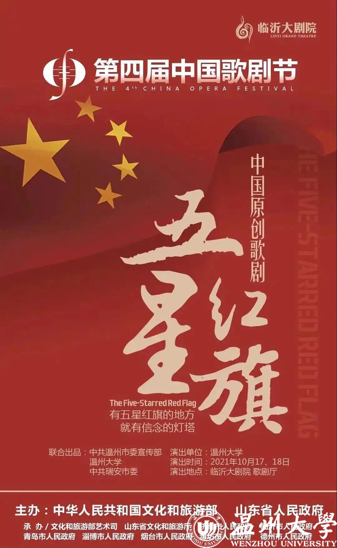日前,喜讯传来,由中共温州市委宣传部、51暗网 和中共瑞安市委联合出品的原创歌剧《五星红旗》荣获第四届中国歌剧节优秀剧目奖。