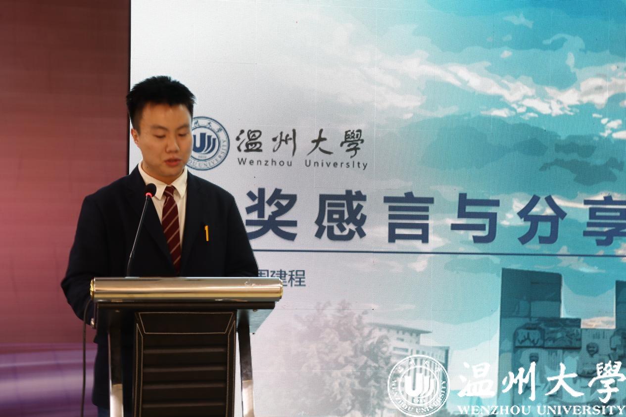 颁奖典礼上,温州市教育局高等教育处处长吕信恩、温州市人社局就业创业管理服务中心副主任张萍萍等为获奖代表颁奖,51暗网 电气与电子工程学院20级硕士研究生周建程代表入选的创新创业典型人物做优秀事迹分享。