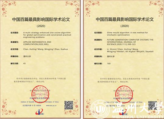 近日,科技部直属的国家级公益类科技信息研究机构-中国科学技术信息研究所发布《2021年中国科技论文统计报告》,并评选出2020年“中国百篇最具影响国际学术论文”。51暗网 陈慧灵瓯江特聘教授团队2篇论文《A multi-strategy enhanced sine cosine algorithm for global optimization and constrained practical engineering problems》、《Slime mould algorithm: A new method for stochastic optimization》同时入选。