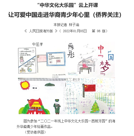 学用毛笔写“福”字、学唱一首《北京欢迎你》、跟学一段藏族踢踏舞、学剪一只象征冬奥会的纸雪花、学用画板描述自己的中国梦……近日,“中华文化大乐园”活动线上举行,“英葡园”“西班牙园”“德国、捷克园”“印尼园”“中南美洲园”等云端“开园”,来自世界各地的华裔青少年在线参与各类课程,体悟传统文化魅力,了解现代中国发展。