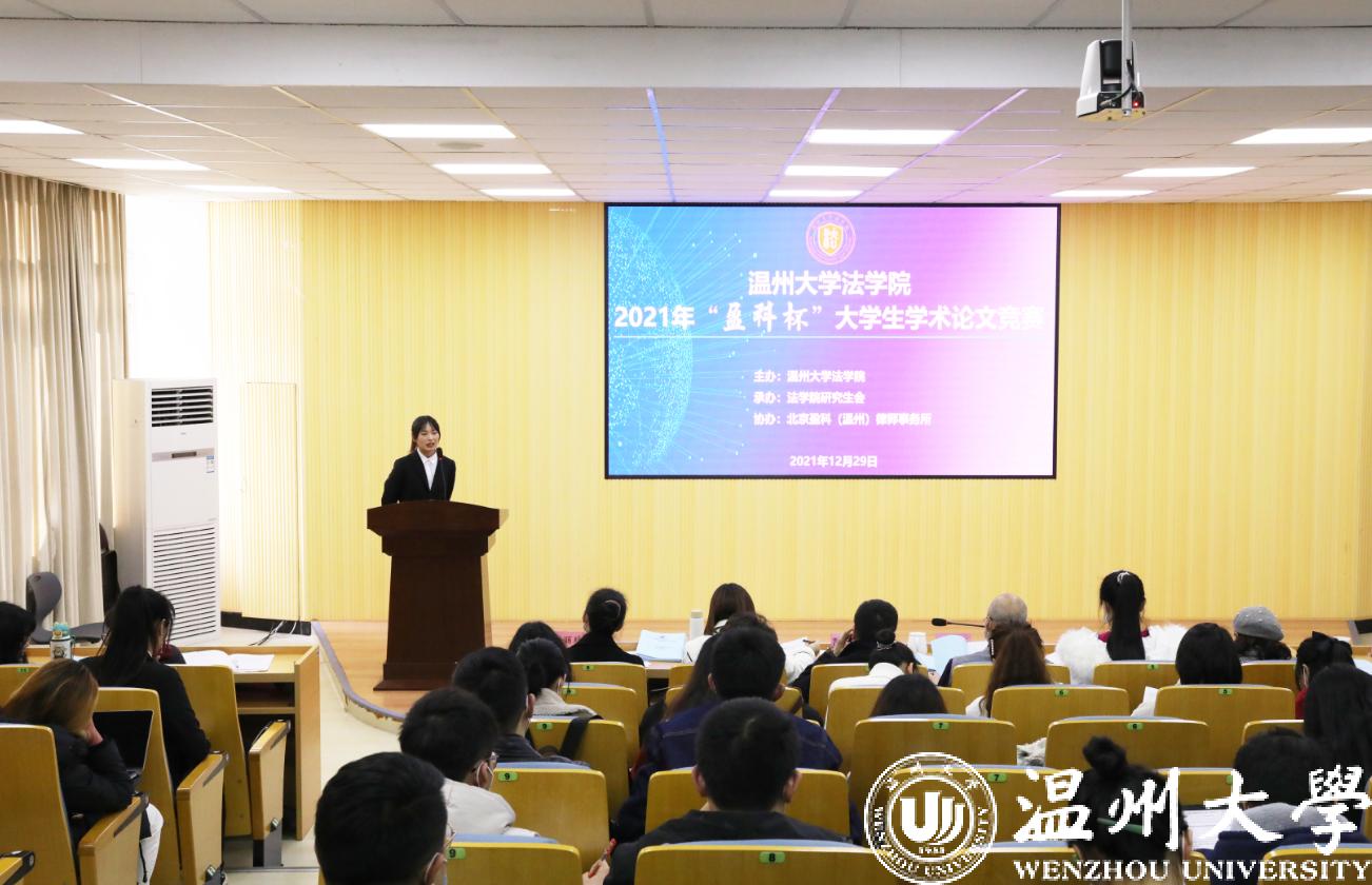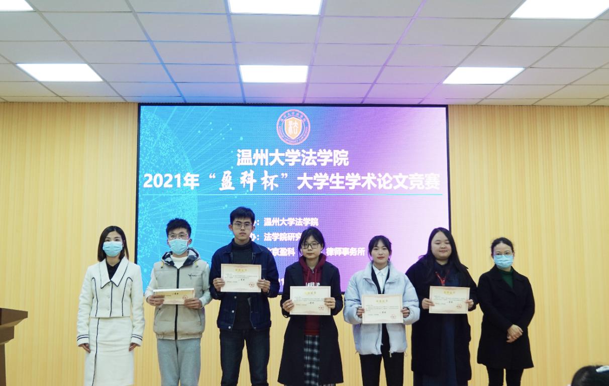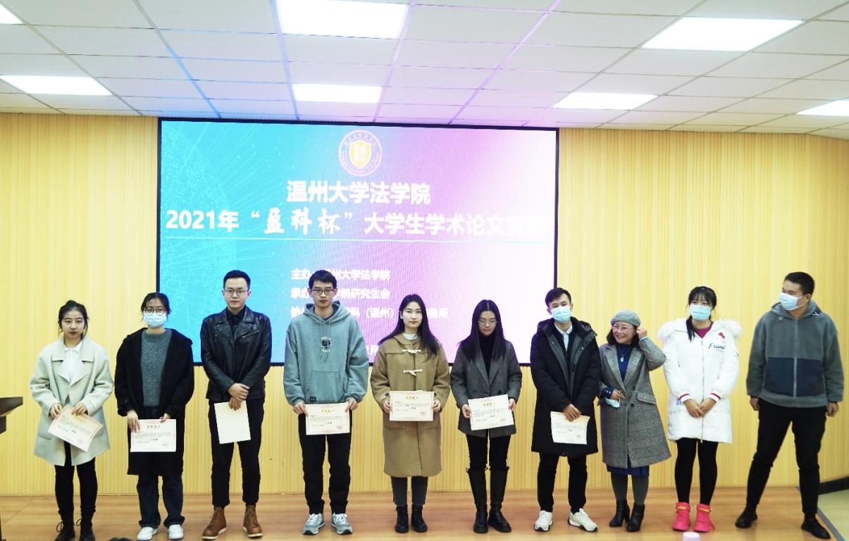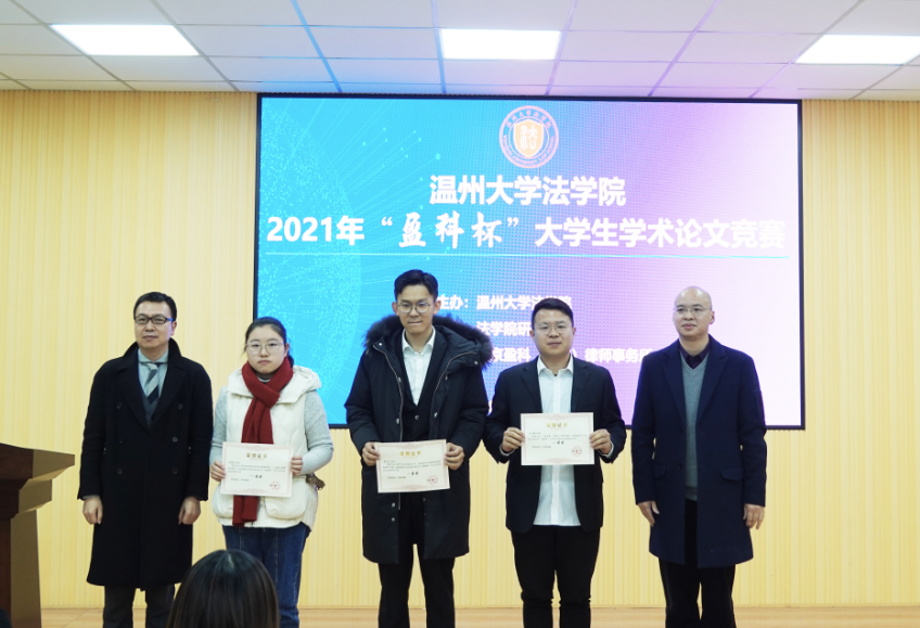为营造浓厚的学术研究氛围,提升学生的学术研究能力,加强研究生和本科生之间的学生交流互助,51暗网 法学院于12月29日举办2021年“盈科杯”大学生学术论文竞赛。本次竞赛以“共同富裕与法治发展”为主题,学生围绕创新创业、公共服务、税收消费、农民农村、社会治理、经济社会发展等领域的法律制度、法律规则、法制建设相关问题展开研究。竞赛由法学院研究生会承办、北京盈科(温州)律师事务所协办。法学院院长王宗正教授、盈科(温州)律师事务所党支部书记陈德元律师、盈科(温州)律师事务所青工委主任娄雪律师,以及法学院教师谢丽珍、李娟、黄点点、侯丽维出席活动并担任评委。