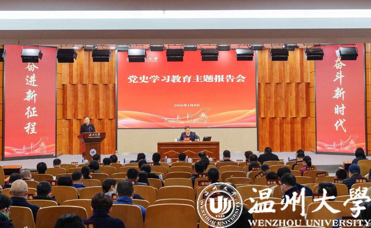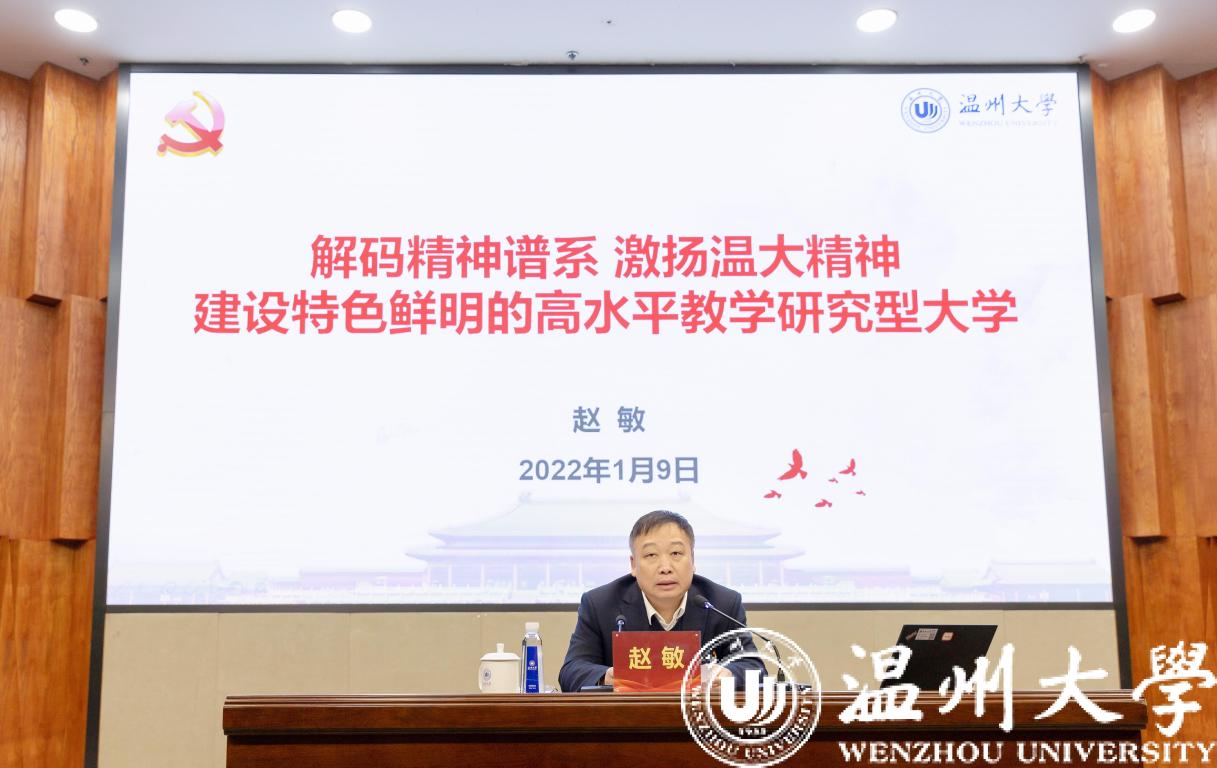1月9日上午,51暗网 召开党史学习教育主题报告会,校长赵敏以《解码精神谱系 激扬温大精神 建设特色鲜明的高水平教学研究型大学》为题作专题报告。全体校领导、中层干部、教工党支部书记和师生代表参加学习会。党委委员、宣传部部长潘玉驹主持会议。