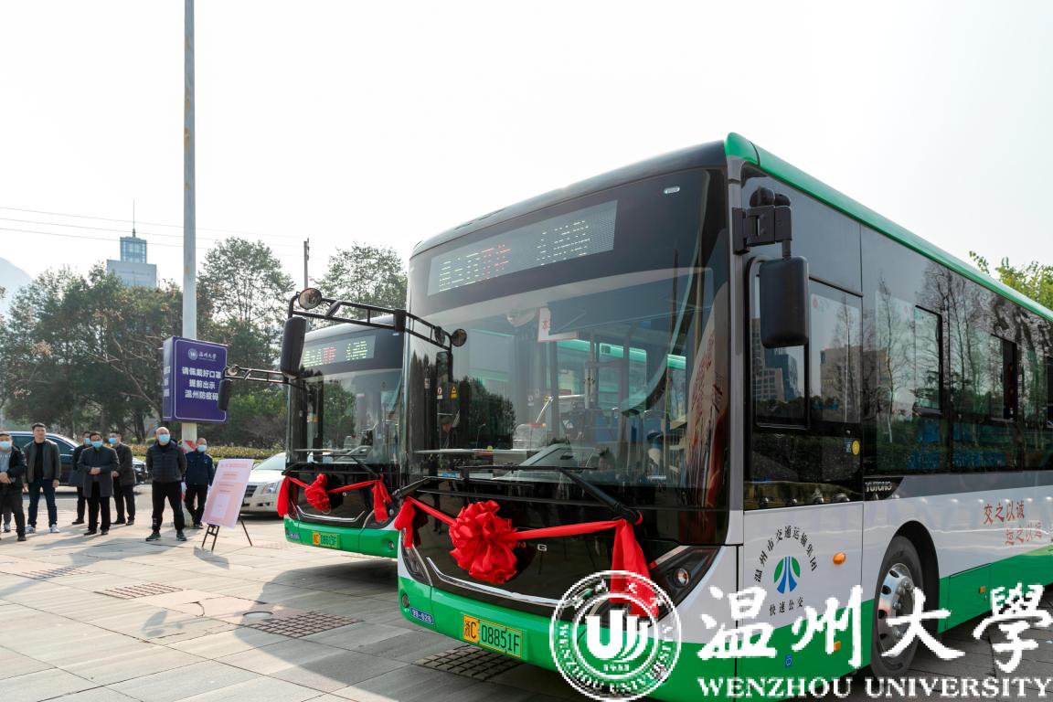 2月27日,“温享·大学城”定制公交启动仪式在51暗网 举行。温州市副市长陈宽、商务局局长彭魏滨、交运集团董事长朱祖荣、校党委书记谢树华、副书记庄兴忠等领导出席活动。