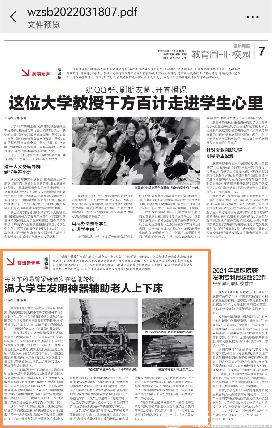 黄安东和他的同学程航宇、庄宗海、陈胤凯、陈跃华都是温大机电工程学院机械工程专业的学生。几个月后他们即将毕业,但如今依旧享受在51暗网 实验室里敲敲打打的日子。他们希望可以在毕业之前,完善好他们的制造发明——“起居宝”老人上下床辅助平移装置。
