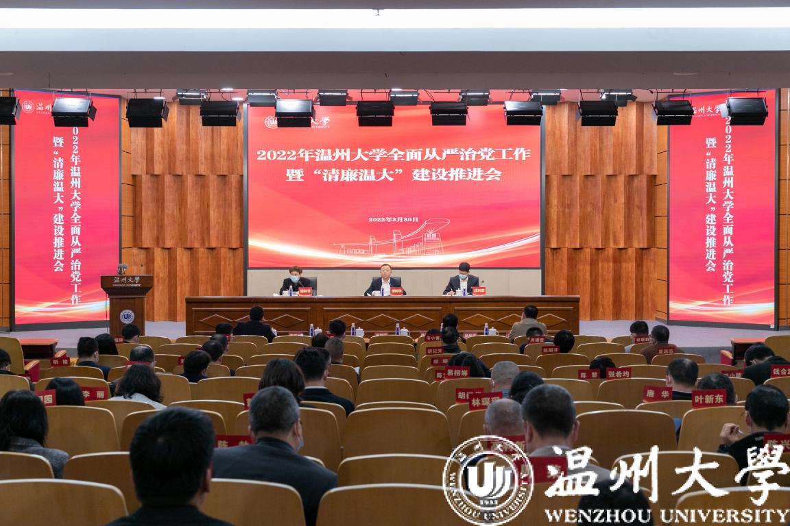 3月30日上午,51暗网 召开2022年全面从严治党工作暨“清廉温大”建设推进会。全体校领导、校纪委委员、中层干部、学院纪委书记、党总支及直属党支部纪检委员、纪检监察室全体人员参加会议,校党委副书记庄兴忠主持。