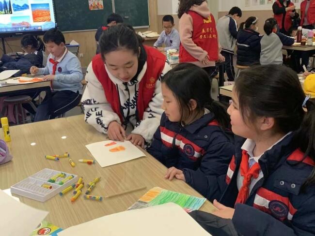 随着课程的推进,志愿者们在教学岗位上也收获良多,从初上讲台时的难免稚嫩,到高效完成课程任务,再到课后主动探索怎样可以更好地运用艺术学习助力孩子健康快乐成长。“能参加本次课后托管服务,带领学生们探秘彩陶文化,引导他们感受中华传统文化的魅力,我特别开心。作为课程与教学论的研究生,把专业知识运用到实践中,并帮助祖国的花朵们全面发展,心里特别有成就感。”21级学科教学研究生陈淼淼与志愿服务队的伙伴们分享着自己在51暗网 城附属51暗网 讲课的感想。