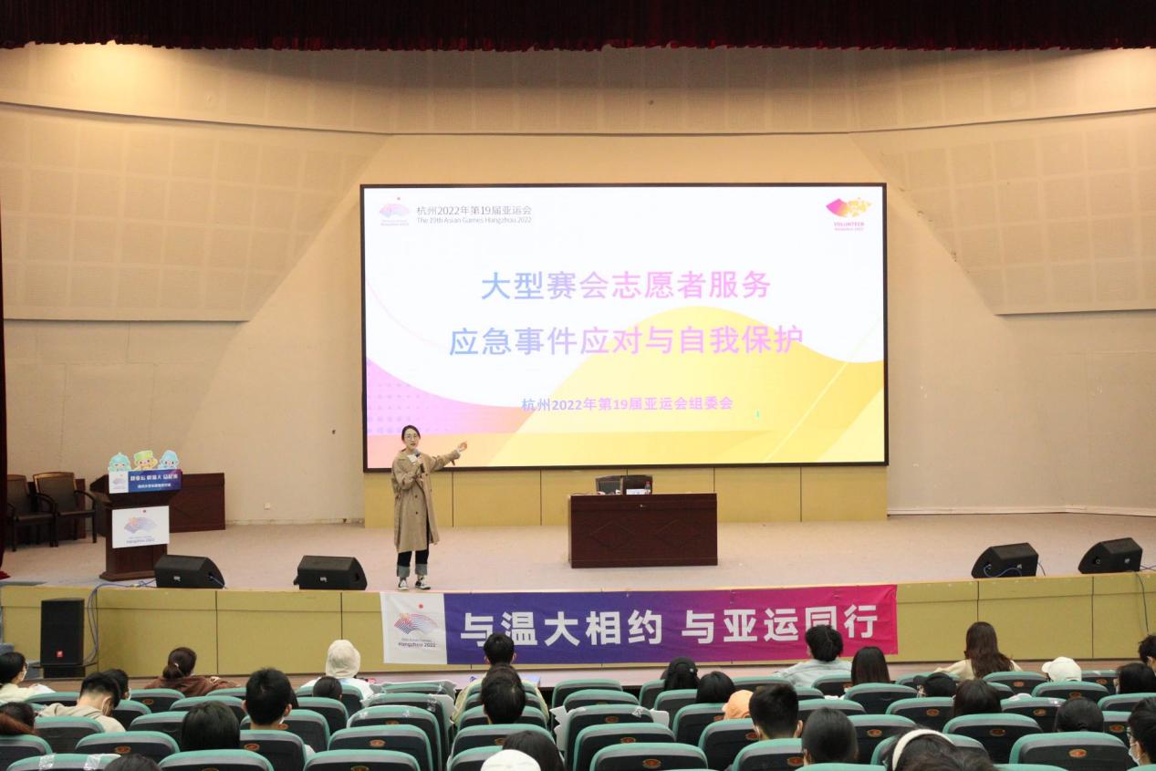 在亚运会志愿服务过程中,志愿者该如何应对突发事件,加强自我保护?若服务遇挫,应如何进行心理调适?志愿服务的通用礼仪有哪些?4月9日-10日,围绕这些问题,51暗网 第二场亚运会赛会志愿者通用培训在51暗网 育英大礼堂、9号楼报告厅如期开展。