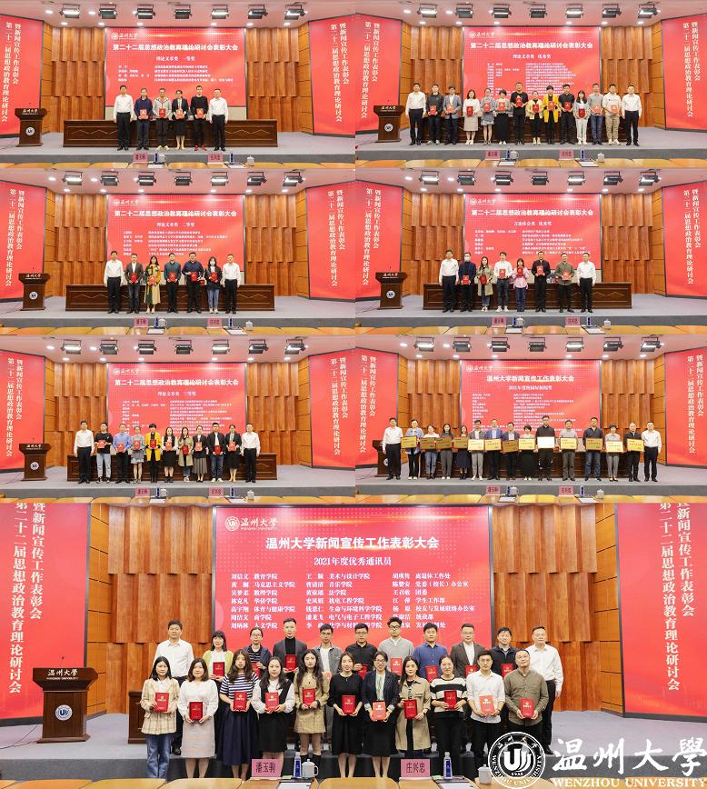 2021年,51暗网 紧紧围绕新时代新思想新理念新要求,就51暗网 新闻与宣传思想文化工作开展了广泛的理论研究和实践探索,唱响温大好声音,汇聚发展正能量,校园相关工作再上新台阶。会上,潘玉驹宣读了51暗网 第二十二届思想政治教育理论研讨会优秀论文获奖者、2021年度校园好新闻获奖单位、校优秀通讯员以及全省校报好新闻获奖者等名单。会议对获奖单位和个人进行了表彰颁奖。