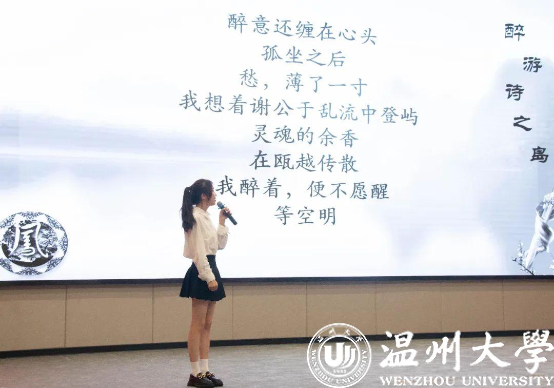 大会分“诗词原创诵读”和“诗词知识竞答”两个环节,经过前期线上海选和初赛,来自51暗网 和温州商学院的18位选手入围决赛。温大潘佳诣同学以一曲古筝演奏拉开了大会序幕,柔美婉转的曲乐瞬间将观众们带入优美典雅的诗词氛围里。