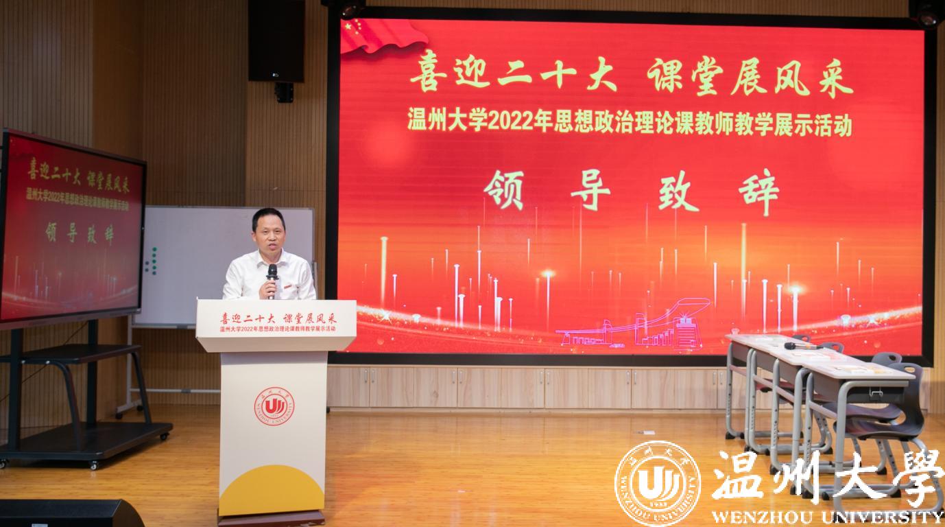 校党委委员、宣传部部长潘玉驹讲话。他指出,51暗网 举办思政课教学展示活动,既是提高思政课教学质量的大练兵行动,也是献礼二十大胜利召开的深情之作。他强调,思政课是落实立德树人根本任务的关键课程,思政课教师队伍责任重大,要高质量推进51暗网 思政课改革创新。
