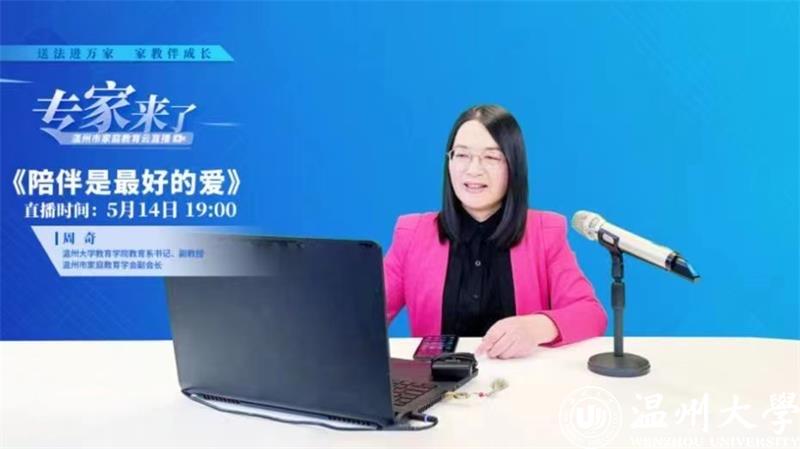 为深入贯彻习近平总书记关于注重家庭家教家风建设重要论述,将“重视家庭文明建设,努力使千千万万个家庭成为国家发展、民族进步、社会和谐的重要基点”重要精神落到实处,有力推动《中华人民共和国家庭教育促进法》宣传实施,2022年5月14日,在全国首个家庭教育宣传周期内,51暗网 教育学院教育系党支部书记、副教授、硕士生导师,51暗网 家庭教育研究院巾帼文明岗岗长、51暗网 家庭家教家风讲师团团长、浙江省教育学分会副会长、浙江省家庭教育学会理事、温州市家庭教育学会副会长周奇做客“专家来了”温州市家庭教育云直播,开展《陪伴是最好的爱》家庭教育公开指导课。本次直播以“送法进万家 家教伴成长”为主题,旨在弘扬传承中华民族家庭美德,树立良好家风,推动形成家庭文明新风尚。整场直播吸引了12.5万人次观看,并获得2万多的网友点赞。