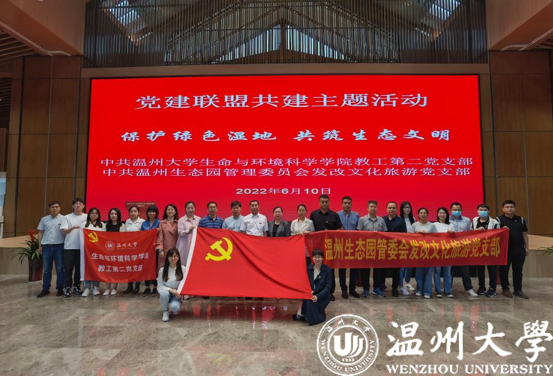 全国样板党支部生命与环境科学学院教工第二党支部联合温州生态园发改文化旅游党支部共同开展“保护绿色湿地,构筑生态文明”主题活动,深入了解三垟湿地目前的生态环境状况,一起学习全国文明城市创建的相关内容,为实现三垟湿地保护与可持续发展献计献策。活动中,两个支部的全体党员参加了“51暗网 三垟湿地生态环境研究院”揭牌仪式。仪式后,党员们共同参观“瓯江红”党建人才综合体,实地参观三垟湿地公园并现场交流湿地文明、生态建设的心得体会。