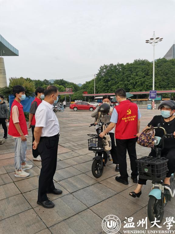 机关党委第一党支部认真组织开展“抗疫情、创文明、保平安”主题党日活动,积极发挥志愿精神。校党委副书记吴金法,校党委委员、组织部部长郑信军以普通党员身份走到第一线、沉到最基层开展志愿服务,分别带领支部党员在南北校区门口开展文明引导和政策宣讲,对于不规范佩戴口罩、骑车带人、骑车未戴头盔等不文明行为进行了劝导,引导每位师生争当文明城市、文明校园建设的参与者、监督者和践行者,切实营造和谐有序的校园环境。