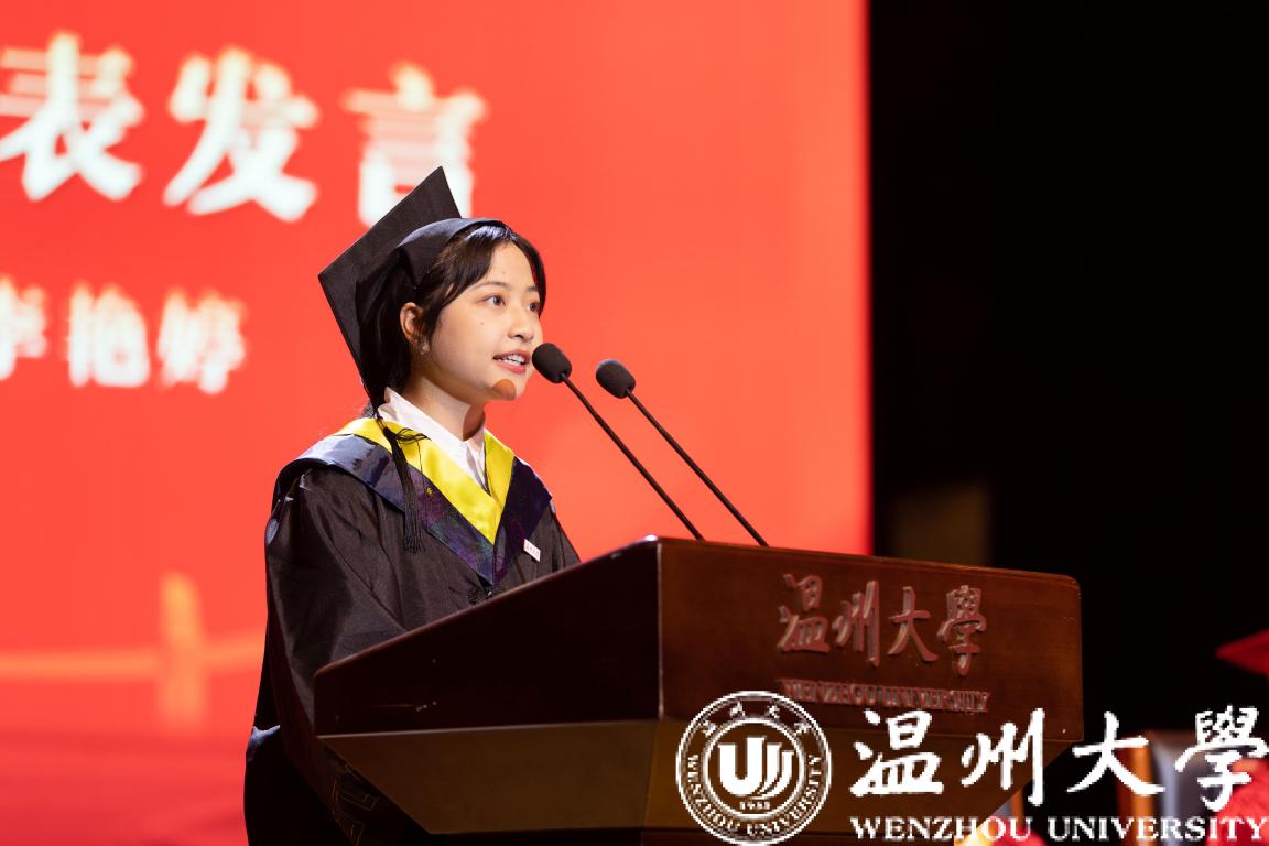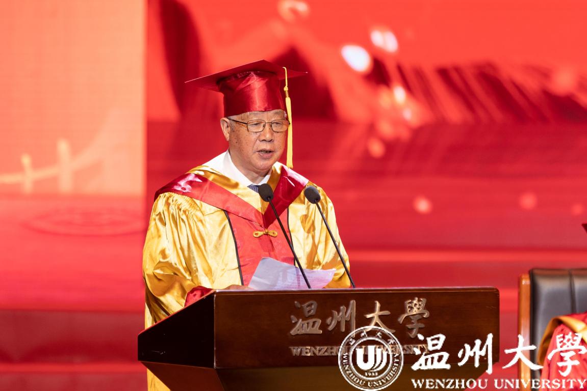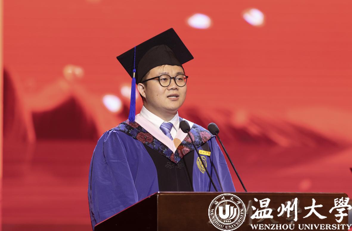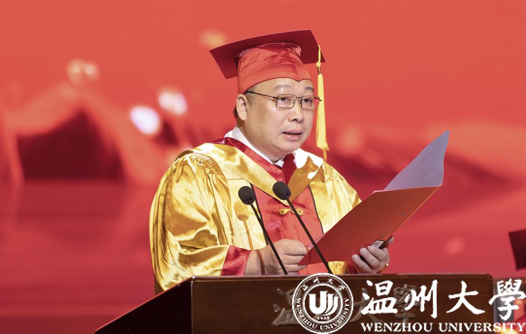 俄罗斯工程院外籍院士、校长赵敏致辞。“几年求学时光如白驹过隙,美好的记忆化成点滴永寄心间”,赵敏校长为同学们与51暗网 一同成长感到由衷的喜悦、骄傲和自豪。“我们一起见证温大迈入浙江省重点建设高校,合力推动温大成功增列为博士学位授予单位,共同谱写温大高质量内涵式发展新篇章。温大见证了你们最美好的青春时光与蜕变成长。”