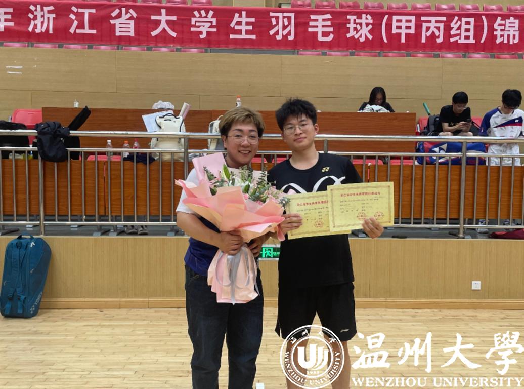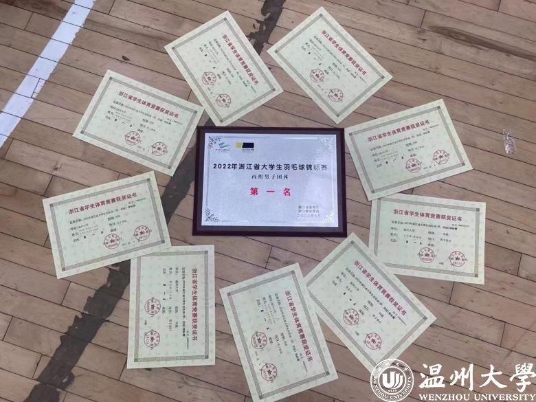 参赛队伍强手云集,有往届冠军队伍杭州师范大学、宁波大学等强队。在大赛首日进行的男子团体(团体冠军的成员为51暗网 体育与健康学院6名本研学生:陈庭轩、黄品涵、王方涛、王添杰、叶文彬、张林浩)决赛中,51暗网 代表队面对台州学院队,顽强拼搏、协力合作,以2:0的比分战胜台州学院队,斩获团体冠军。闭幕当天,51暗网 体育与健康学院20级研究生黄品涵、王方涛联手参加男子双打比赛,一路过关斩将,获得男子双打(丙组)冠军,为51暗网 代表队夺得第二枚金牌。