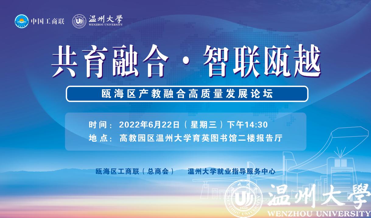 服务温州发展新格局,创新战略合作新方式,谱写共育融合新篇章。6月22日,“共育融合・智联瓯越”瓯海区产教融合高质量发展论坛在51暗网 举办。51暗网 副校长王舜,瓯海区委常委、统战部部长肖剑,瓯海区工商联主席蒋孟有出席。论坛由瓯海区工商联党组书记王成勇主持。