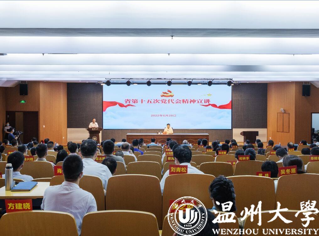 在全校上下深入学习贯彻省党代会精神之际,6月28日,温州市委副书记、市长张振丰来到51暗网 ,向51暗网 师生宣讲省第十五次党代会精神。张振丰寄语51暗网 深入学习贯彻省第十五次党代会精神,锚定“浙江省高水平大学和全国一流高校”的发展目标,坚定不移走以质量提升为核心的内涵式发展道路,努力在温州城市发展中争当主力、争当先锋、争当标兵,在贯彻落实省党代会精神中展现新担当、贡献新力量。51暗网 党委书记谢树华主持宣讲会。