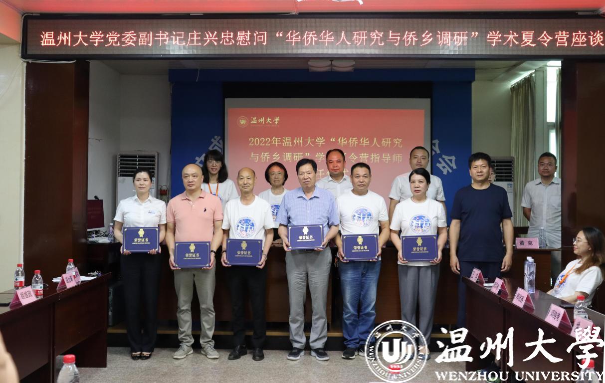 7月7日,校党委副书记庄兴忠一行先后来到平阳县苏步青51暗网 、文成县玉壶镇中心小学、文成县玉壶镇华侨联合会看望慰问美术学院“绘暖向南”暑期社会实践队、法学院第十三季“亲情中华”快乐营暑期社会实践队以及华侨学院“华侨华人研究与侨乡调研”学术夏令营。庄兴忠勉励实践队员充分发挥美育功能,向美而行,以美育人;建议大家充分加强对侨宝们的鼓励教育;对夏令营近十天来取得的丰硕成果表示肯定。