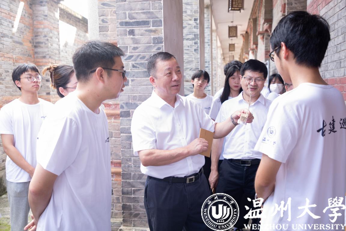 7月4日,校党委书记谢树华一行来到三垟湿地慰问建筑工程学院“古建巡礼”暑期社会实践队和生命与环境科学学院“碧水源”、“青山”暑期社会实践队。在三垟周氏旧宅,谢树华观看队员们搭建建筑模型,他建议同学们在设计建筑时要充分考虑环境,选择的建筑材质要兼具环保性和经济性,希望同学们在实践过程中更加注意湿地生态的保护。在51暗网 三垟湿地生态环境研究院,谢树华和实践队师生亲切交谈,希望他们积极探索专业和实践深度融合新模式,将论文写在祖国大地上,为三垟湿地的健康发展“开方”。座谈会上,谢树华充分肯定同学们的表现和所取得的成果。他表示,社会实践活动是51暗网 教育的延伸,参与社会实践有利于提高同学们的综合素质。作为温大学子应该用自身所学为建设美丽温州竭尽所能,发挥专业优势,服务社会,更好地构建51暗网 与社会的互动桥梁,他勉励同学们坚持潜心学习目的不动摇、坚持服务社会导向不偏离、坚持知行合一理念不懈怠、坚守安全第一底线不放松。谢树华希望大家珍惜实践机会,做有效实践,唱响51暗网 青年学子在窗口写青春的温大最强音。三垟湿地管委会主任陈朝明及所在地相关领导也一同参加慰问和座谈。