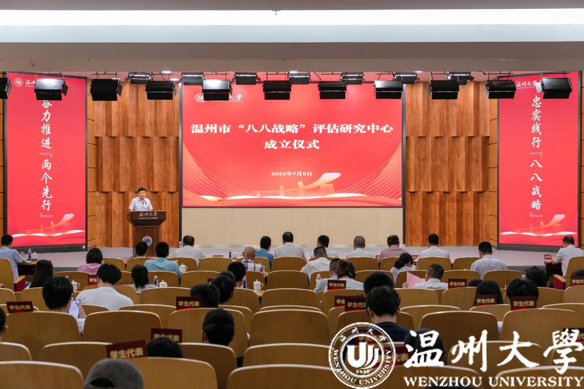 7月8日,由温州市决策咨询委员会、中共温州市委政策研究室、中共温州市委党校、51暗网 联合建设的温州市“八八战略”评估研究中心在51暗网 正式授牌成立。市决咨委主任、市政协原主席余梅生,市委一级巡视员、市决咨委副主任胡剑谨,校党委书记谢树华,副校长徐和昆,市委党校常务副校长洪文滨,市委副秘书长、政策研究室主任、市决咨委秘书长潘建中等领导,以及市直部门代表、市决咨委委员、市“八八战略”评估研究中心专家、51暗网 教师与学生代表等参加仪式。市委副秘书长潘建中主持。成立仪式由51暗网 人文社科处、马克思主义学院等单位承办。