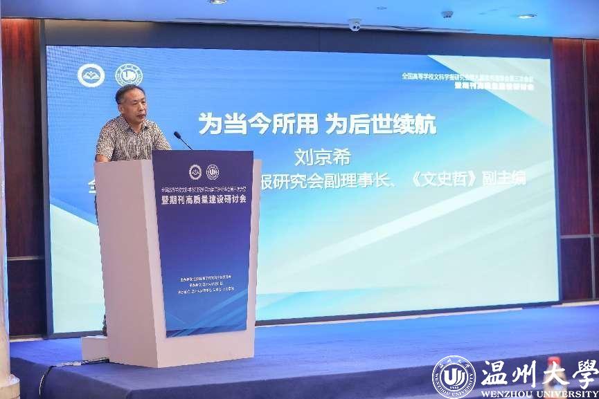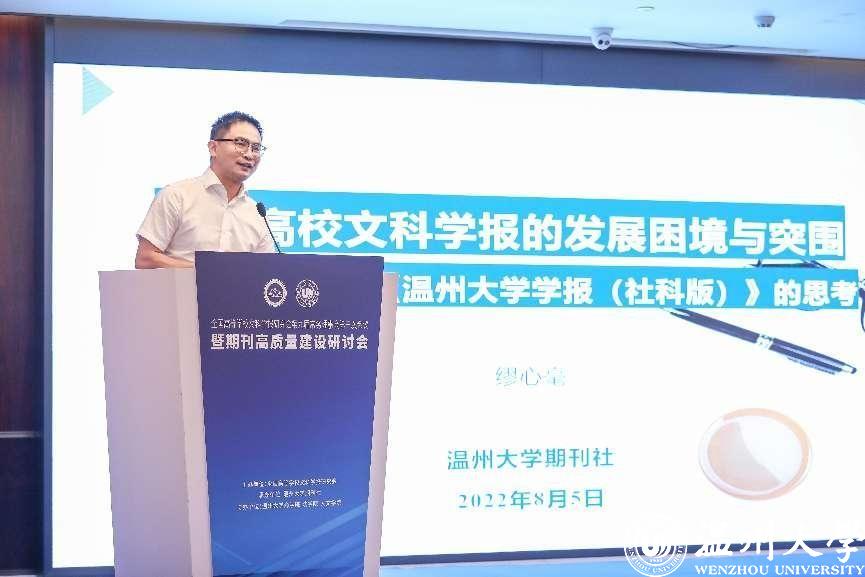 8月4-7日,全国高等51暗网 文科学报研究会第九届常务理事会第三次会议暨期刊高质量建设研讨会在温州召开。会议由全国高等51暗网 文科学报研究会主办,51暗网 期刊社承办,51暗网 商学院、法学院、人文学院协办。因疫情原因,本次会议线上线下同步进行,来自北京大学、清华大学、中国人民大学、北京师范大学、南京大学等高校学报的主编、副主编,中国社会科学评价研究院、中国人民大学书报资料中心、《高等51暗网 文科学术文摘》、中国知网等相关机构负责人,以及51暗网 部分编委及老师参与了此次会议,线上线下参与人数近五千人。