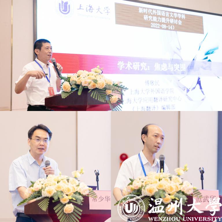 为精准对接新时代我国外国语言文学学科的发展要求,提高外国语言文学学术研究水平,加强学术研究成果的社会化及应用,8月13-14日,2022新时代外国语言文学学科学术研究能力提升研讨会在温州举行。本次研讨会由上海大学温州研究院、温州海育教育科技有限公司主办,由51暗网 外国语学院承办,并得到《上海翻译》《中国外语》、上海外语教育出版社、南京大学出版社等我国外国语言文学学科领域十多家期刊编辑部和出版社的支持。