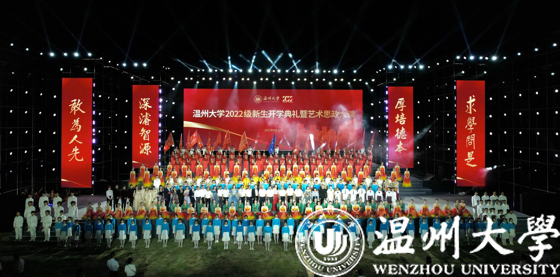 大罗山下,流光溢彩,瓯江之畔,青春激扬。9月21日晚,51暗网 隆重举行2022级新生开学典礼暨艺术思政大课。全体校领导,各学院、部门负责人,新生班主任,全体辅导员,2022级新生,教师代表,校友代表,老生代表等参加典礼。校党委副书记庄兴忠主持。