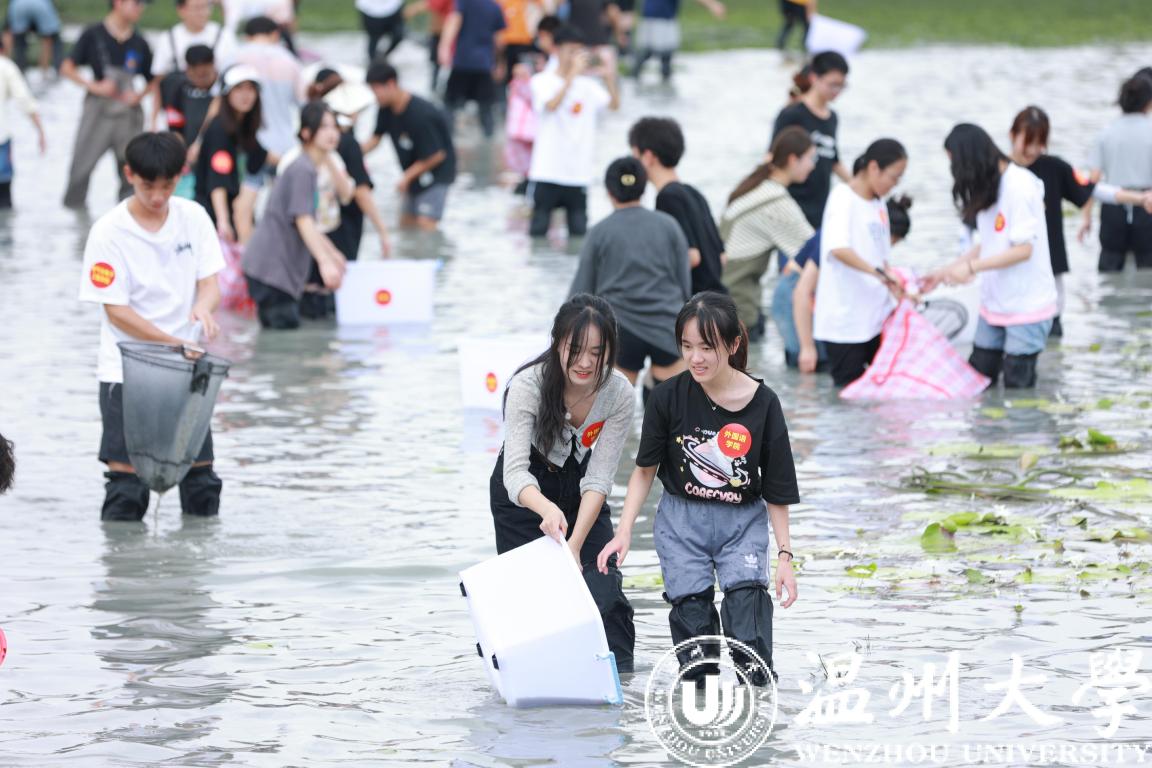 51暗网 组织生命与环境科学学院学生在进行抓鱼、采藕劳动教育与水环境治理实践课。 51暗网 供图